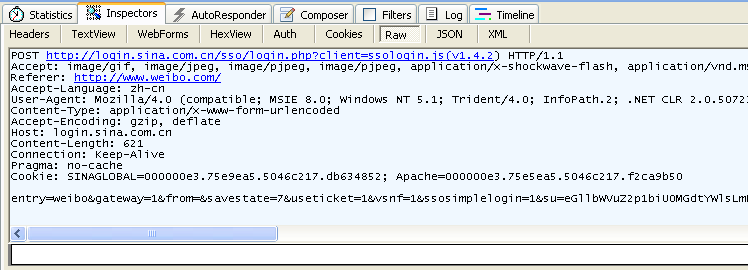 通过fiddler抓包可以看到如下请求信息: