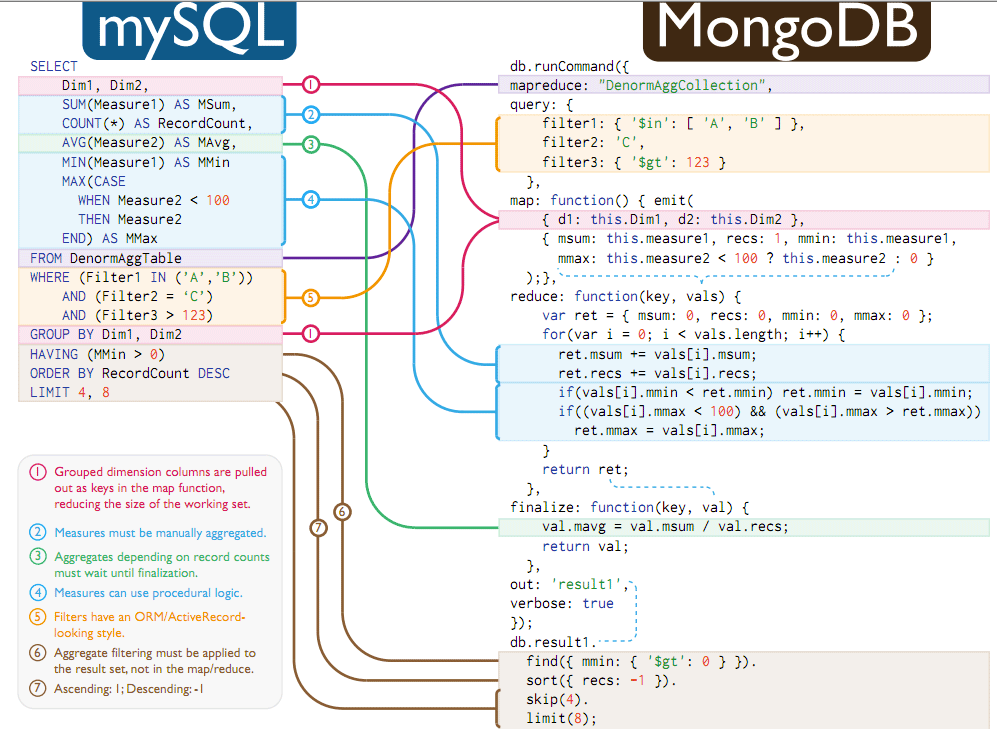 下图展示了mysql和mongoDB之间的对应关系,我们可以看出来非常的方便,但是mongoDB的性能非常好。