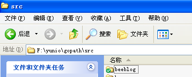 ,但是必须保证gopath这个代码目录下面有三个目录pkg、bin、src。新建项目的源码放在src目录下面,现在暂定我们的博客目录叫做beeblog,下面是在window下的环境变量和目录结构的截图: