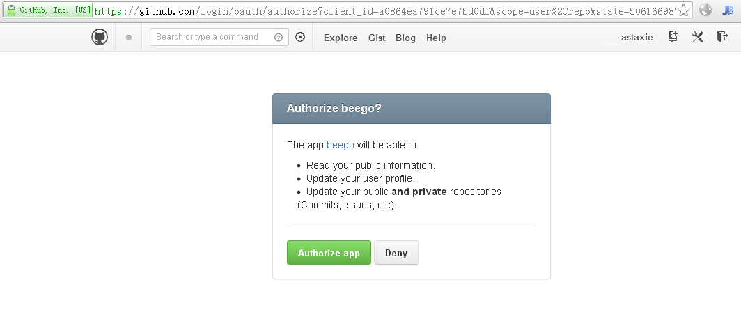下面代码演示了如何把该库引入beego中从而实现oauth的认证,这里以github为例演示: